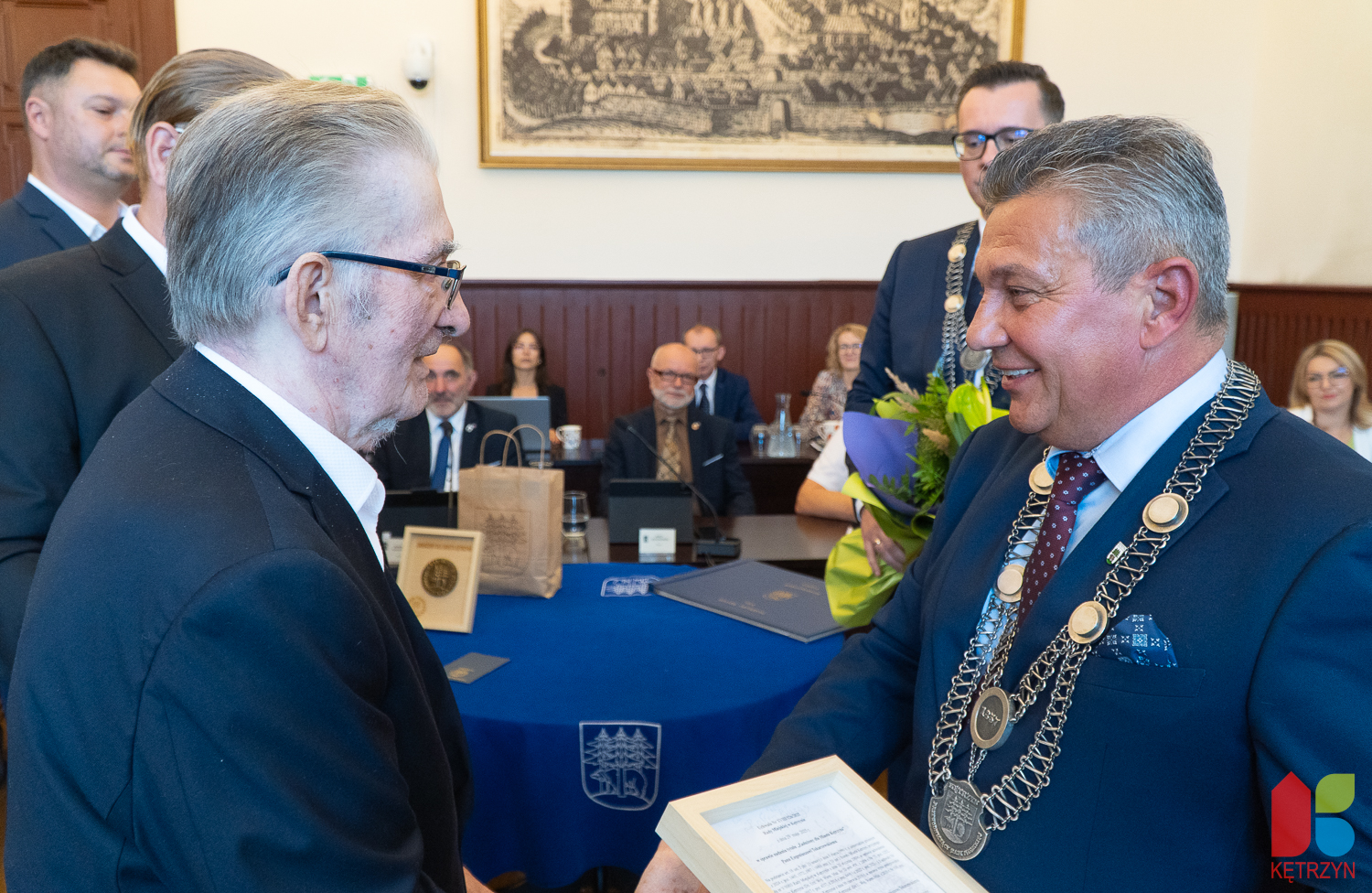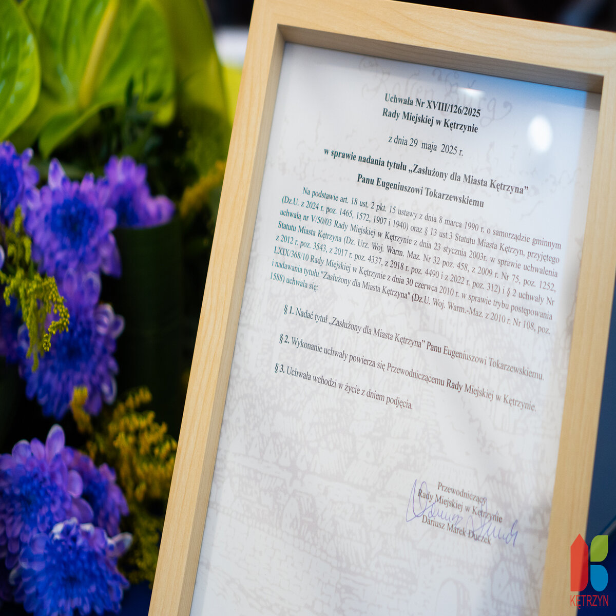 Podczas dzisiejszej, uroczystej sesji Rady Miejskiej w Kętrzynie Pan Eugeniusz Tokarzewski został uhonorowany tytułem „Zasłużony dla Miasta Kętrzyna”. Uchwałę o nadaniu tego zaszczytnego wyróżnienia wręczyli Dariusz Duczek, Przewodniczący Rady Miejskiej w Kętrzynie oraz Karol Lizurej, Burmistrz Miasta Kętrzyna.