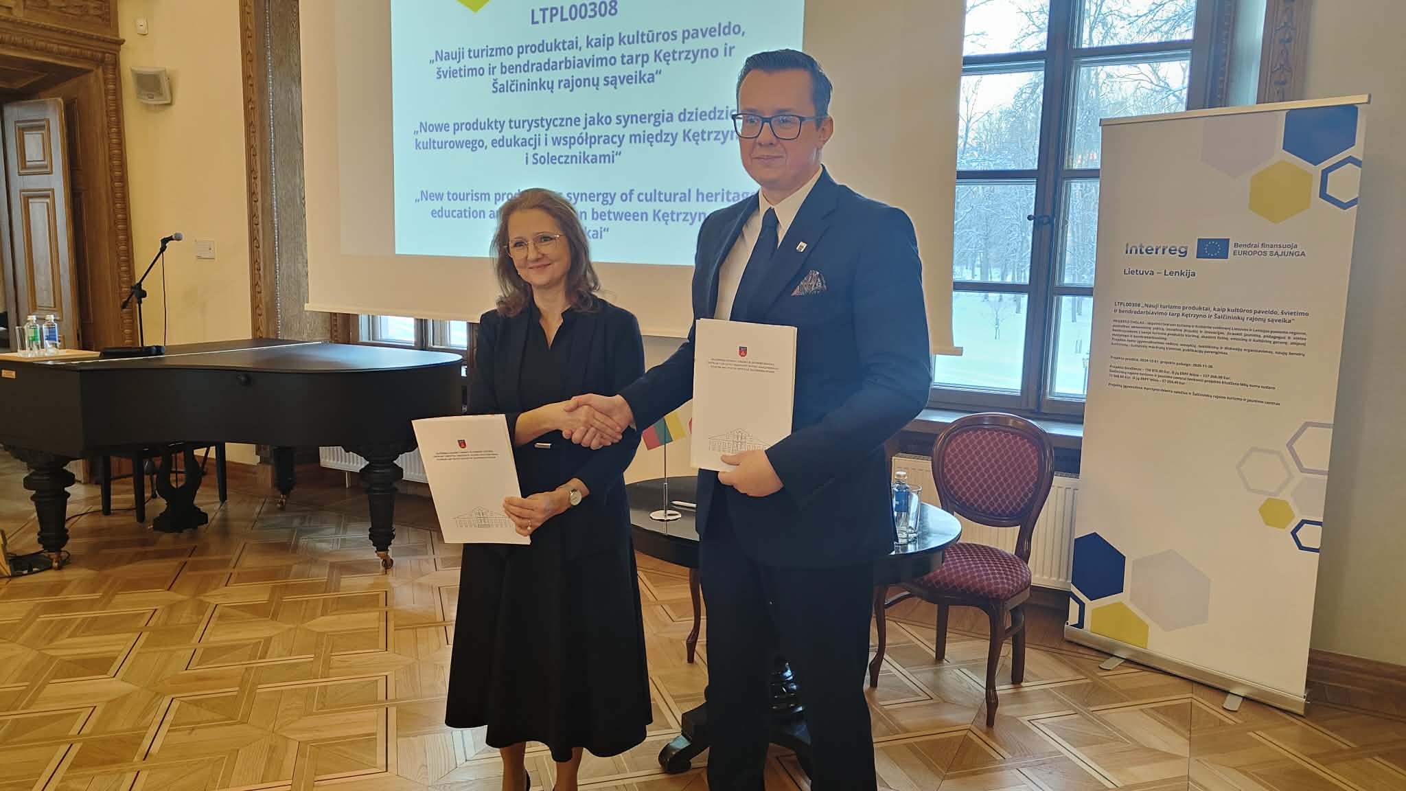 Delegacja Miasta Kętrzyna 22 stycznia 2026 r. wzięła udział w konferencji kończącej projekt „Nowe produkty turystyczne jako synergia dziedzictwa kulturowego, edukacji i współpracy między Kętrzynem i Solecznikami”, która odbyła się w Pałacu Balińskich w Jaszunach na Litwie. Delegacji przewodniczył Burmistrz Miasta Kętrzyna Karol Lizurej, a w jej składzie znalazł się również Starosta Kętrzyński Michał Kochanowski.