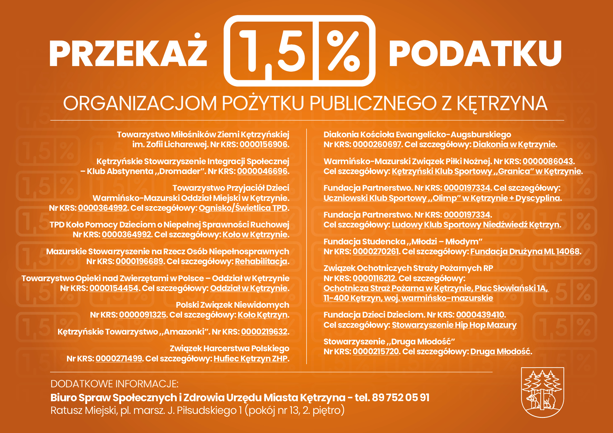 Przekaż 1,5% podatku organizacjom z Kętrzyna